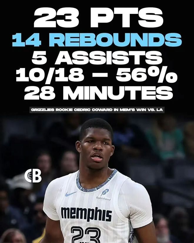 小伙子科沃德18中10,23分14板5助攻