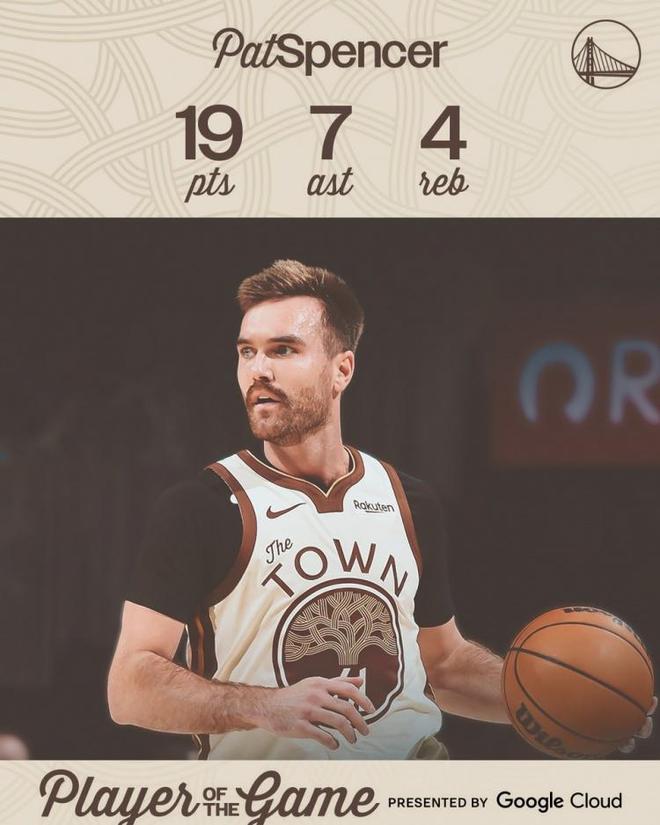 面对斯宾塞这样的表现,勇士官方赛后发文将其评选为本场最佳,并配文:“61号挺身而出!”