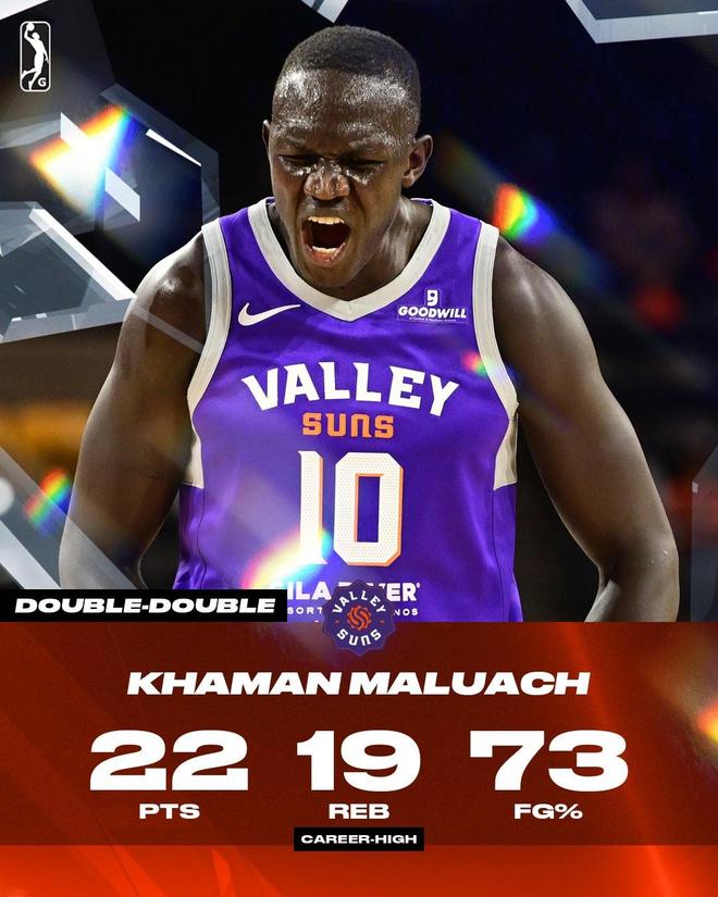本场比赛,被菲尼克斯太阳队下放到发展联盟练级的今年10号秀马鲁阿奇首发出战,全场比赛马鲁阿奇11投8中高效得到22分19篮板2助攻1抢断4盖帽,展现了自己的能力。