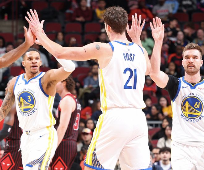 勇士近期状态有所复苏,在缺少库里的情况下,接连击败骑士和公牛,取得了一波2连胜。客场面对公牛的比赛,全队命中22记三分,6人得分上双,巴特勒19分8篮板6助攻,波杰姆斯基替补拿到21分8篮板7助攻。目前勇士战绩为13胜12负,排在西部第8的位置。