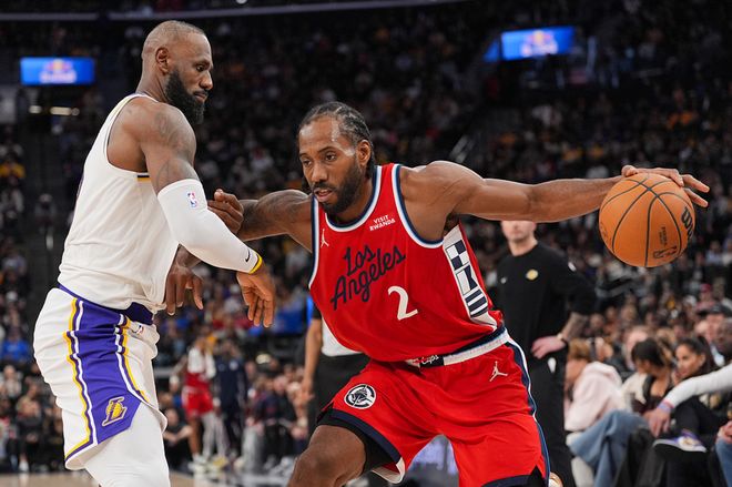 快船主场迎战湖人,快船缺少了比尔、琼斯,湖人缺少了里夫斯、艾顿、八村、文森特,此战祖巴茨打了11分钟伤退,东契奇打了20分钟伤退,快船此战优势很大,全场压制湖人,最终快船以15分优势拿下比赛。伦纳德24中8得到32分12板3助3断2帽,哈登20中6得到21分4板10助2断,湖人方面詹姆斯28中15得到36分4板3助2断,东契奇因伤只打了20分钟,13中4得到12分5板2助。