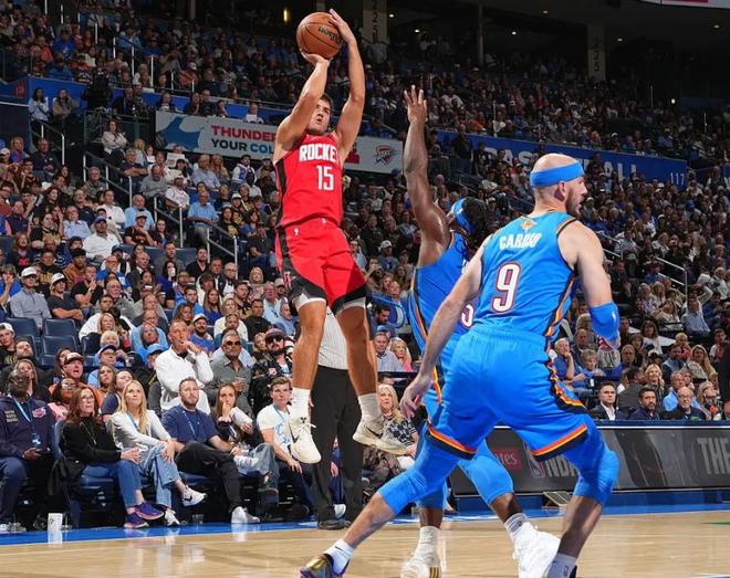 阿门、申京的成长符合预期,最让人惊喜的是谢泼德这个点,赛季至今10场比赛场均能交出12.2分2.2篮板3.2助攻,投篮命中率49%,三分命中率50%,正在打出人们期待中的篮球,值得一提的是DFS这位顶级锋线3D还没有回归阵容,放眼整个联盟火箭队是唯一一支攻防两端、阵容深度都能匹配上雷霆强度的球队,没有之一!